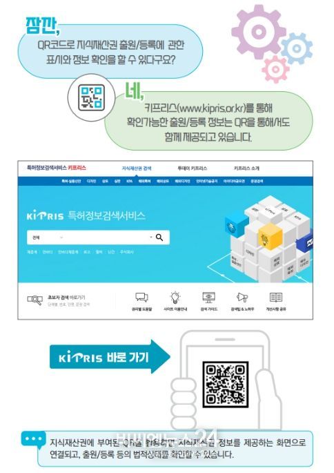 소비자가 각 지식재산권에 부여된 ‘지식재산권 정보무늬(QR코드)’를 스캔하면 해당 지재권 정보를 제공하는 키프리스화면으로 연결되어 출원·등록 등의 상태를 확인할 수 있다.