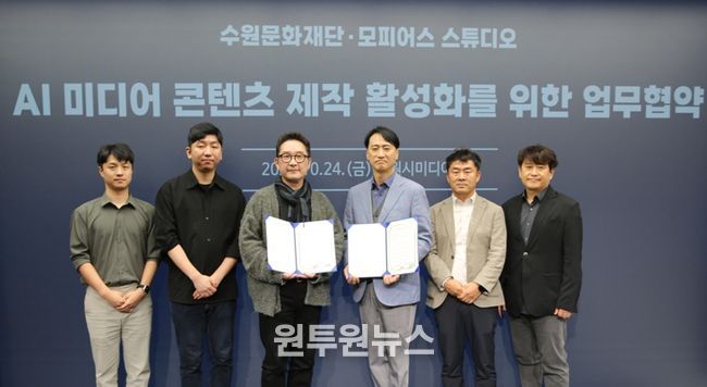 (원투원뉴스) 수원문화재단 미디어센터는 지난 24일 모피어스 스튜디오와 ‘AI 기반 콘텐츠 창·제작 협력 체계 구축’을 위한 업무협약(MOU)을 체결했다.