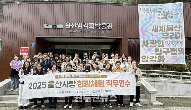 (원투원뉴스) 울산광역시교육연수원(원장 한현숙)은 25일 울주군 대곡리와 천전리 일원에서 유치원, 초중등 교원 40명을 대상으로 ‘울산 사랑 현장 체험 직무연수’를 진행했다.