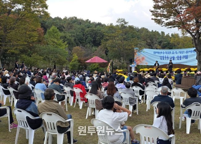 (원투원뉴스) 여주시는 지난 10월 25일 오후 2시부터 4시까지 황학산수목원 잔디피크닉장에서 열린 황학산수목원 숲속 작은 음악회 ‘임(林)과 함께’가 시민과 관광객의 큰 호응 속에 성공적으로 마무리됐다고 밝혔다. 약 400명의 시민이 참여하고 수목원 입장객은 1,700여 명에 달했다.
