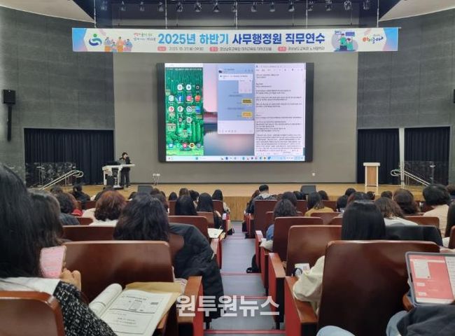 (원투원뉴스) 경상남도교육청은 27일 경상남도교육청 미래교육원 미래공감홀에서 도내 교육공무직 사무행정원 400여 명을 대상으로 2025년 하반기 직무연수를 열었다.
