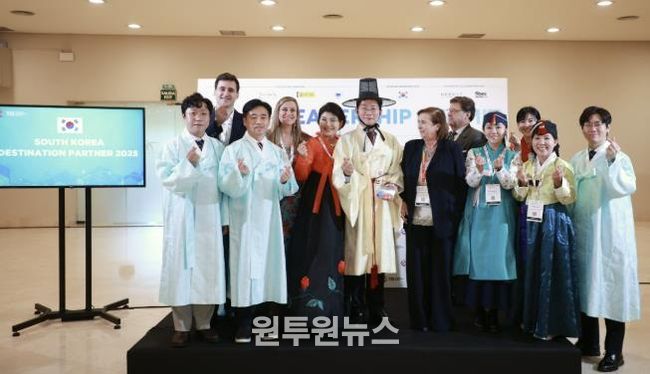 (원투원뉴스) 스페인을 방문한 용인특례시 대표단이 세비야에서 열린 '관광혁신 서밋(Tourism Innovation Summit) 2025'에서 한복 차림으로 행사에 참여하고 갓과 '호작도' 등을 선물해 스페인 현지의 큰 관심을 끌었다.