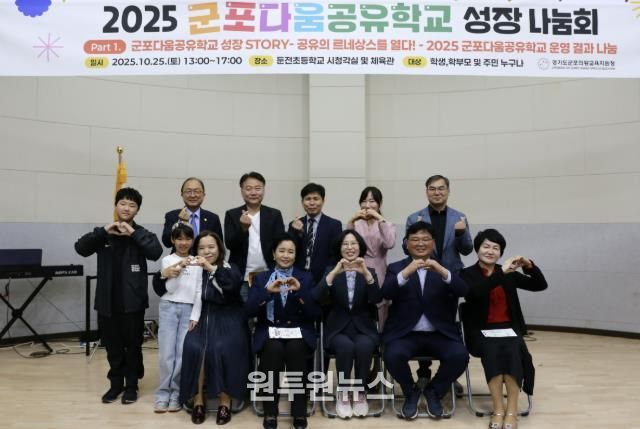 (원투원뉴스) '2025 군포다움공유학교 성장 나눔회'가 10월 25일 둔전초등학교에서 성황리에 열렸다. “공유의 르네상스를 열다.”라는 주제로 열린 이번 행사는 군포다움공유학교 프로그램에서 인성교육, 늘봄학교까지 이어지는 공유학교의 성과를 한자리에서 보여주는 뜻깊은 자리였다.