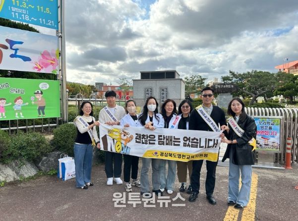 (원투원뉴스) 경상북도영천교육지원청은 2025년 10월 24일, 영천초등학교 일대에서 영천시보건소와 함께 청소년의 건강한 성장을 위한 ‘청소년 담배판매금지 홍보 활동’을 전개했다.