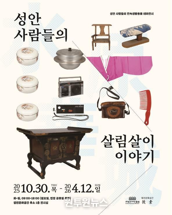 (원투원뉴스) 수원화성박물관 열린문화공간 후소는 10월 30일부터 2026년 4월 12일까지 1층 전시실에서 테마전시 ‘성안 사람들의 살림살이 이야기’를 연다.