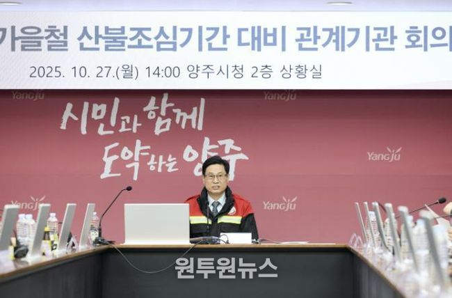 (원투원뉴스) 양주시가 지난 27일 ‘2025년 가을철 산불조심기간 대비 관계기관 회의’를 열고 산불 예방과 대응 강화 방안을 논의했다.