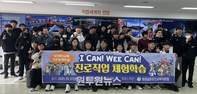 (원투원뉴스) 충청남도당진교육지원청 특수교육지원센터에서는 10월 27일 당진 관내 중·고등학교 특수교육학생 38명을 대상으로 ‘2025 특수교육대상학생 진로·직업 체험학습’을 실시했다.