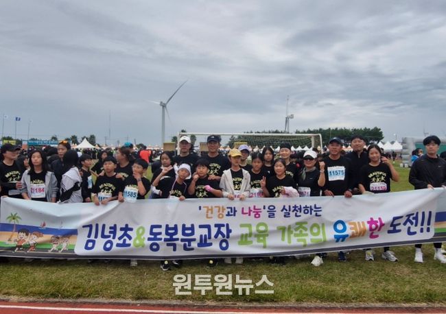(원투원뉴스) 제주도교육청 김녕초등학교는 26일 구좌생활체육공원 운동장에서 열린 ‘제17회 아름다운 제주 국제마라톤대회’에 김녕초 및 동복분교장 교육가족 50명이 함께 참가했다고 밝혔다.
