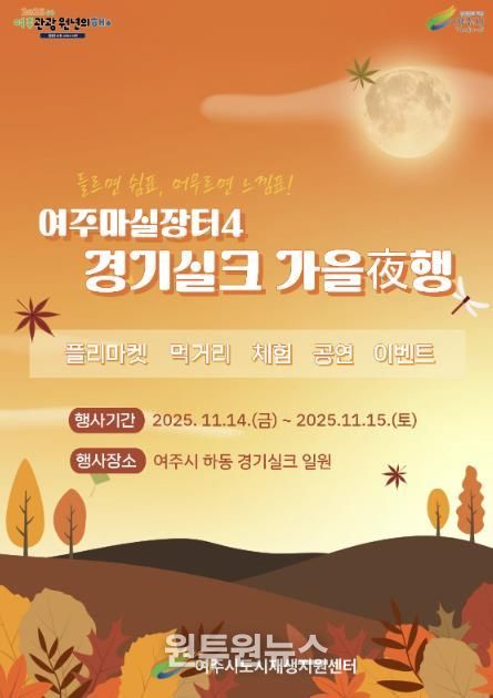 (원투원뉴스) 여주시는 오는 11월 14일, 15일, 이틀간 경기실크 일대에서 ‘여주마실장터4 가을야(夜)행’을 개최한다.