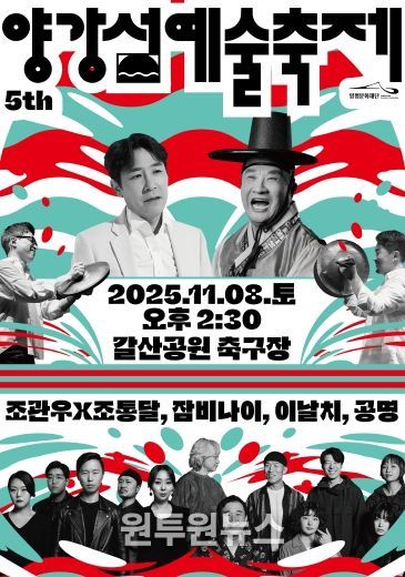 (원투원뉴스) 양평문화재단은 오는 11월 8일 오후 2시 30분부터 '제5회 양강섬예술축제'를 갈산공원 축구장에서 개최한다고 밝혔다.
