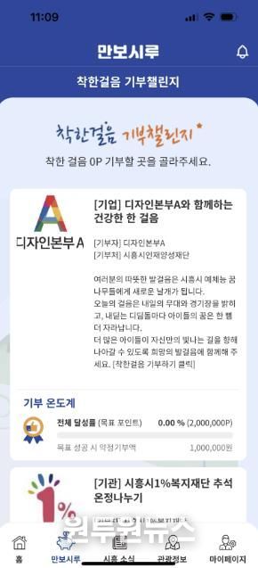 이번 챌린지에서는 만보시루 이용자들의 총 걸음 수 포인트가 200만 보에 도달하면, 디자인본부A가 100만 원을 시흥시인재양성재단 장학사업에 기부할 예정이다. 재단은 이번 기부처 등록을 통해 시민들의 기부 선택의 폭이 한층 넓어지고, 지역 생활 기부문화가 더 활성화될 것으로 기대하고 있다.