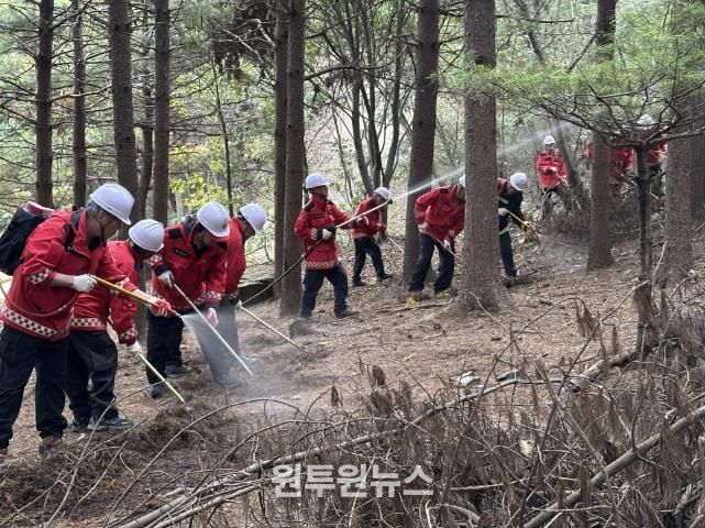 훈련에서는 산불 발생 시 초기 대응과 진화 기본요령, 장비 운용법 등을 숙지하는 한편, 대형·초고속 산불에 대비한 방어선 구축과 주민 대피 요령 등을 중점적으로 다뤘다.