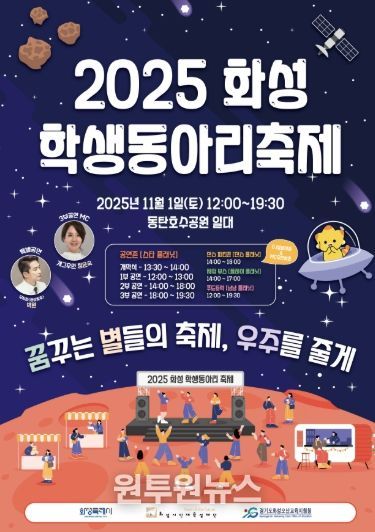 (원투원뉴스) 화성특례시는 오는 11월 1일 낮 12시부터 저녁 7시 30분까지 동탄호수공원 일대에서 ‘2025 화성학생동아리축제’를 개최한다.