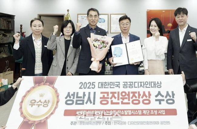 (원투원뉴스) 성남시는 문화체육관광부가 주관한 ‘제18회 2025 대한민국 공공디자인대상’에서 한국공예‧디자인문화진흥원장상(공진원장상)을 수상했다고 30일 밝혔다.