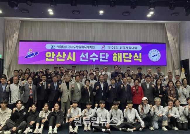 (원투원뉴스) 안산시는 지난 29일 안산상공회의소 그레이트컨벤션에서 ‘제36회 경기도생활체육대축전 및 제106회 전국체육대회 안산시 선수단 해단식’을 개최하고 안산시를 빛낸 선수단의 노고를 격려하는 자리를 마련했다고 30일 밝혔다.