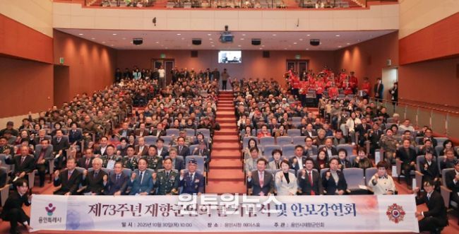 (원투원뉴스) 용인특례시는 30일 시청 에이스홀에서 ‘제73주년 재향군인의 날 기념식’을 개최했다고 밝혔다.