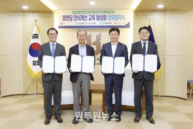 (원투원뉴스) 부천시는 지난 30일 (사)웰다잉문화운동, 부천희망재단, 관내 노인복지관과 함께 웰엔딩 인식개선 교육 활성화를 위한 업무협약을 체결했다.