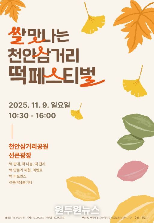 (원투원뉴스) 천안 쌀로 만든 떡을 주제로 한 ‘제1회 쌀맛나는 천안삼거리떡 페스티벌’이 오는 9일 천안삼거리공원 선큰광장에서 개최된다.