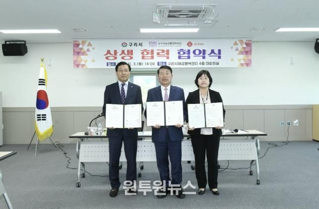 (원투원뉴스) 구리시는 지난 11월 3일 구리시 여성행복센터 4층 대회의실에서 재단법인 구리시 상권 활성화재단과 롯데쇼핑㈜ 롯데마트사업본부가 참여한 가운데,‘구리시·구리시 상권 활성화재단·롯데마트 상생협력 협약’을 체결했다고 밝혔다.