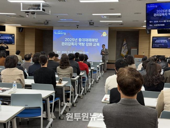 수성구는 지난 4일 구청 대강당에서 관리감독자를 대상으로 ‘중대재해 예방 역량 강화 교육’을 실시했다고 밝혔다.