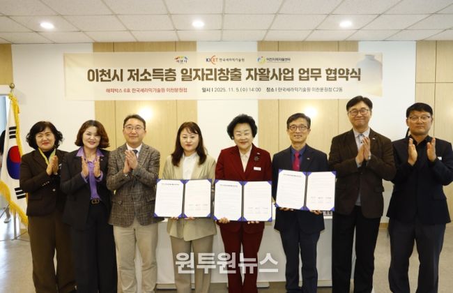 (원투원뉴스) 이천시는 11월 5일 오후 2시, 한국세라믹기술원 이천분원에서 이천시 자활사업인 ‘해피박스 6호점’ 설치를 위해 이천지역자활센터, 한국세라믹기술원과 함께 3자 업무협약(MOU)을 체결하고 개소식을 성황리에 개최했다.