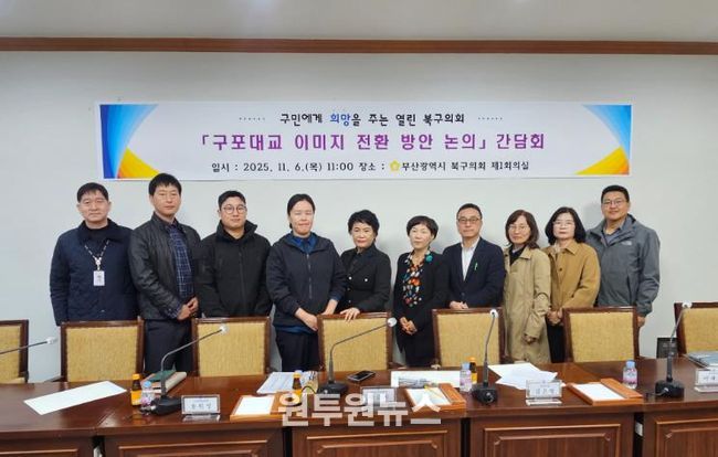 (원투원뉴스) 부산광역시 북구의회는 11월 6일 북구의회 제1회의실에서 구포대교의 부정적 이미지를 개선하고 투신 사고를 예방하기 위해 '구포대교 이미지 전환 방안 논의' 간담회를 개최했다고 밝혔다.