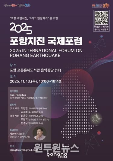 (원투원뉴스) 포항시는 오는 13일 오전 10시부터 포은흥해도서관 음악강당에서 ‘2025 포항지진 국제포럼’을 온오프라인 병행 개최한다.