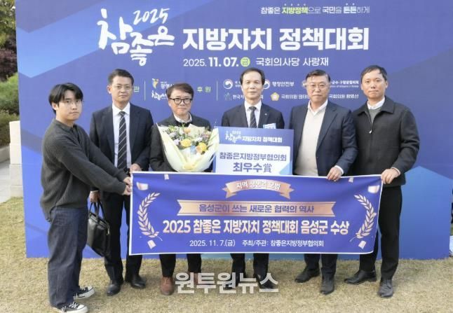 (원투원뉴스) 음성군은 지난 7일 국회 사랑재에서 열린 2025년도 참좋은 지방자치 정책대회 시상식에서 최우수상을 수상했다고 밝혔다.