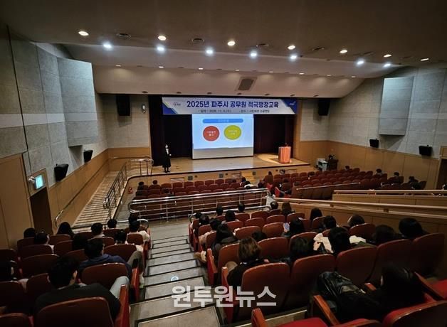 (원투원뉴스) 파주시는 지난 5일 시민회관 소공연장에서 적극행정 문화 확산과 공직자의 역량 강화를 위해 1,000여 명의 직원과 지방공공기관 직원을 대상으로 녩년 파주시 공무원 적극행정 교육’을 실시했다고 밝혔다.