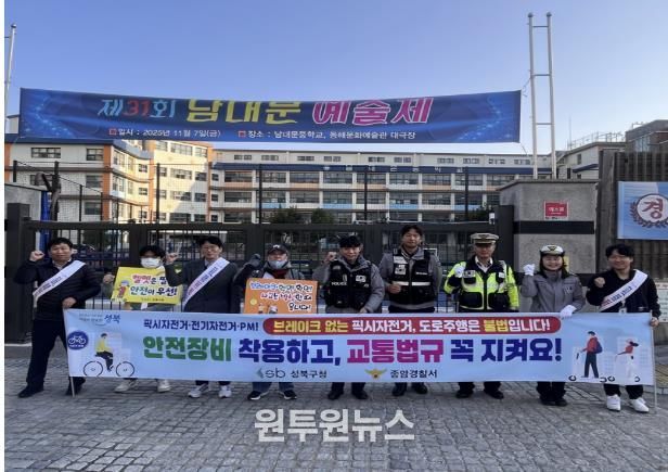 이승로 성북구청장은 “이번 캠페인이 학생들과 지역주민이 자전거와 개인형이동장치를 보다 안전하게 이용하는 계기가 되길 바란다”며 “성북구는 앞으로도 교통안전문화 정착과 사고 예방을 위해 다양한 홍보와 교육 활동을 이어가겠다”고 말했다.