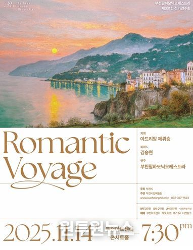 (원투원뉴스) 부천필하모닉오케스트라가 오는 11월 14일 오후 7시 30분 부천아트센터 콘서트홀에서 제331회 정기연주회 'Romantic Voyage'를 개최한다. 공연에는 상임지휘자 아드리앙 페뤼숑과 부천필이 무대에 오르며, 협연자로는 탁월한 음악적 이해력과 구성력으로 호평받는 피아니스트 김송현이 ‘낭만적 여정’에 함께 오른다.