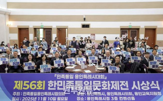 (원투원뉴스) 용인특례시는 10일 시청 컨벤션홀에서 민족통일 용인특례시협의회 주관으로 ‘민족통일 용인특례시대회와 제56회 한민족통일문화제전 시상식’이 열렸다고 밝혔다.