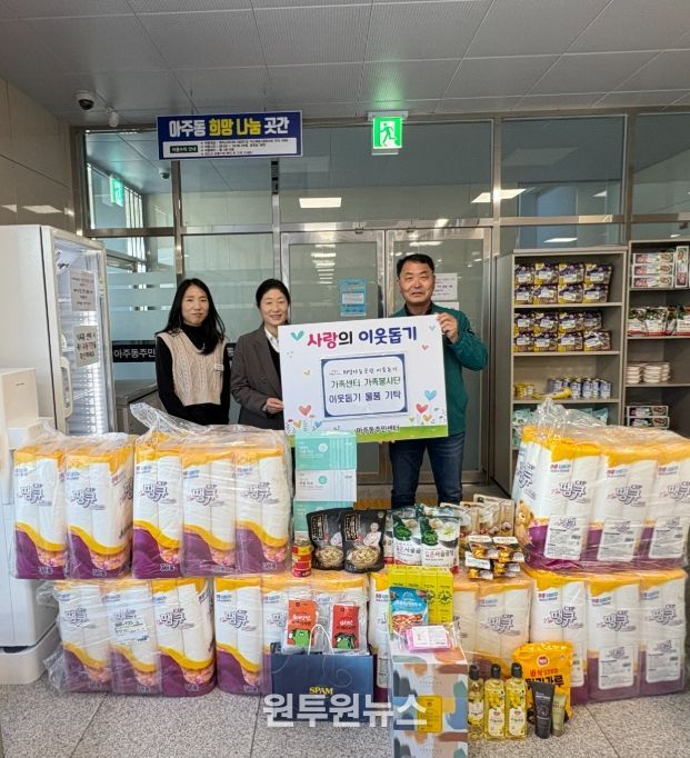 (원투원뉴스) 거제시가족센터는 지난 11월 10일, 가족봉사단과 센터 직원이 함께 준비한 약 30만 원 상당의 생필품을 아주동 행정복지센터 내 ‘희망나눔곳간’에 전달했다고 밝혔다.