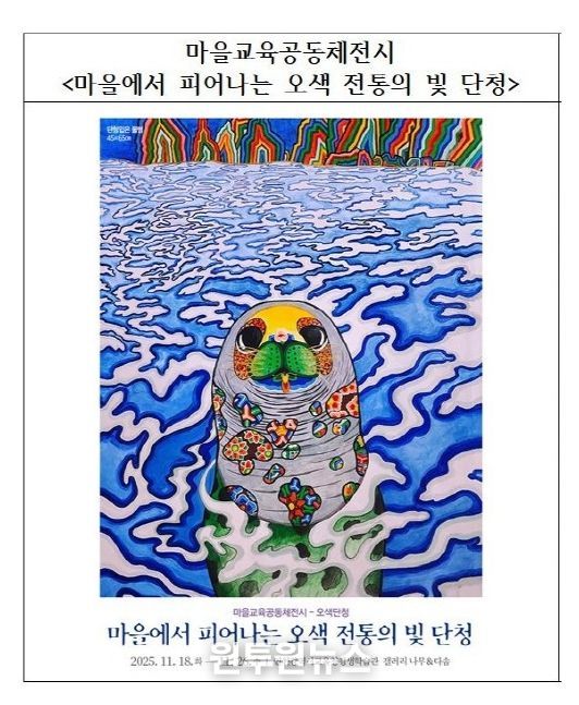 (원투원뉴스) 인천광역시교육청평생학습관은 11월 18일부터 26일까지 평생학습관 2층 갤러리 나무와 다솜에서 ‘마을에서 피어나는 오색 전통의 빛 단청’ 전시를 개최한다.