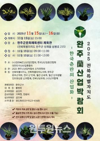 완주군은 오는 11월 15일부터 16일까지 이틀간 완주군 문화체육센터 체육관에서 ‘2025 전북특별자치도 난(蘭) 산업 박람회’를 개최한다고 밝혔다.