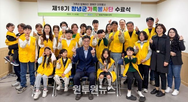 (원투원뉴스) 창녕군은 지난 8일 창녕군자원봉사센터 교육장에서 ‘제18기 창녕군가족봉사단 수료식’을 개최했다고 밝혔다. 이번 수료식에는 가족봉사단 14가족 52명 중 총 8회 활동 중 5회 이상 참여한 13가족 48명이 수료했다.
