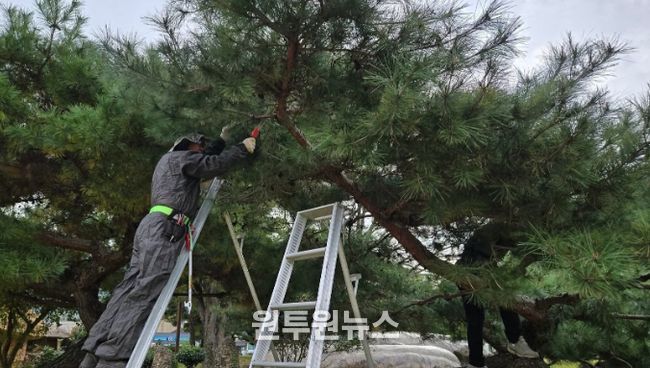 (원투원뉴스) 순천시 봉사단체 ‘순천나무사랑꾼’(회장 김성곤) 회원들이 지난 9일 낙안읍성 주변 소나무를 대상으로 전정 봉사활동을 펼쳤다.