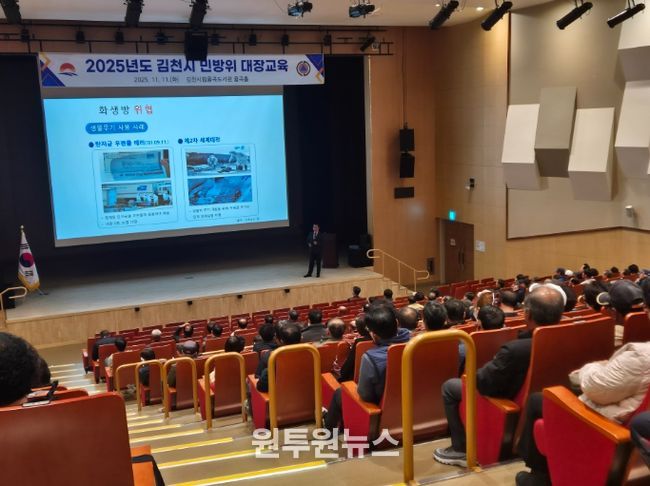 (원투원뉴스) 김천시는 11월 11일 김천시립율곡도서관에서 관내 지역 및 직장 민방위 대장 500여 명을 대상으로 ‘2025년 민방위 대장 교육’을 실시했다.