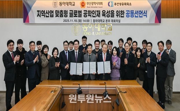 (원투원뉴스) 부산광역시의회는 2025. 11. 18. 14시 동아대학교 승학캠퍼스 대회의실에서 지역산업 맞춤형 글로벌 공학인재 육성을 위한 공동선언식을 진행했다고 밝혔다.