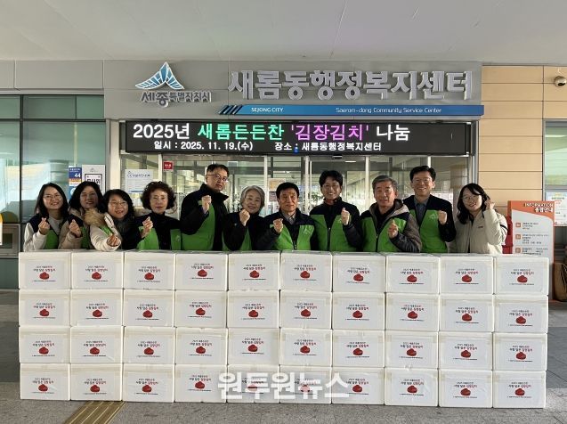 (원투원뉴스) 세종특별자치시 새롬동지역사회보장협의체(공동위원장 강신우·김지원)가 19일 취약계층 40가구에 사랑을 가득 담은 김장김치를 전달했다.