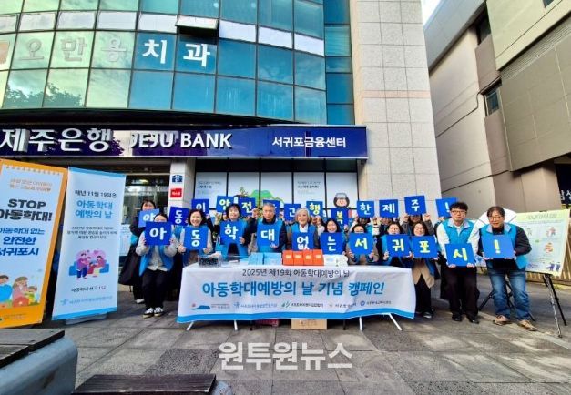 (원투원뉴스) 서귀포시는 지난 19일 중정로 일대에서 ‘제19회 아동학대 예방의 날(11월 19일)’을 기념하여 아동학대 예방을 위한 민‧관‧경 합동 캠페인을 진행했다.