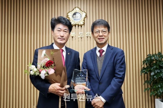 (원투원뉴스) 충북도의회가 장애인생산품판매시설을 통한 구매대행을 적극 지원하고, 장애인직업재활시설 단체가 기관 내 카페를 운영할 수 있도록 협조한 공로로 25일 충북 장애인직업재활시설 협회로부터 감사패를 받았다.