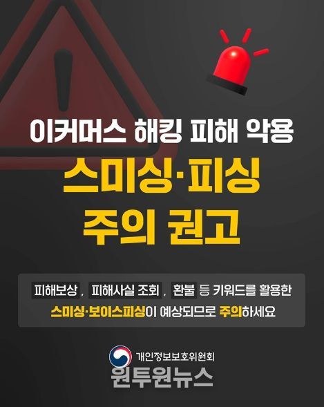 피해보상, 피해사실 조회, 환불 등 키워드를 활용한 스미싱·보이스피싱이 예상되므로 주의하세요.