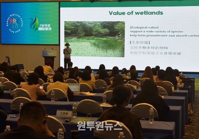 무릉중학교 3학년 학생 2명은 지난 3년간 진행한 생태환경 및 습지 보전 활동을 기반으로 습지에 관심을 갖게 된 계기, 보호의 필요성, 생태·사회적 가치, 학생 실천 사례, 청소년 주도 습지교육의 필요성 등에 대해 영어로 발표했다.