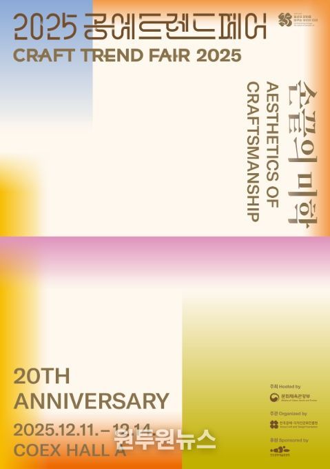 (원투원뉴스) 문화체육관광부는 한국공예·디자인문화진흥원과 함께 12월 11일부터 14일까지 코엑스(서울 강남구)에서 ‘손끝의 미학’을 주제로 ‘2025 공예트렌드페어’를 열어 공예의 다양성과 시장성을 조명한다. 개막식은 행사 첫날인 12월 11일 오후 5시에 열리며, 이 자리에서 올해의 공예상 시상식도 함께 진행한다. ‘올해의 공예상’ 수상자로는 창작 부문에서 오화진 작가(섬유), 이론 부문에서 강재영 전시기획자를 선정했다.