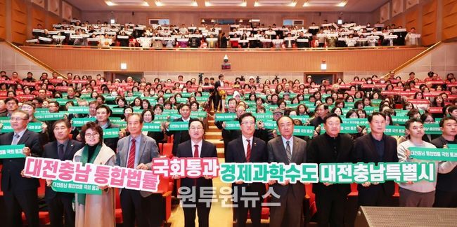 (원투원뉴스) 대전시는 12일 시청 대강당에서 대전광역시의회, 대전충남 행정통합 민관협의체(이하 민관협)와 공동으로 “대전충남 행정통합 설명회 및 시민 한마음 촉구대회”를 개최하고, 대전충남 행정통합 특별법안의 조속한 국회 심의․의결을 촉구했다.