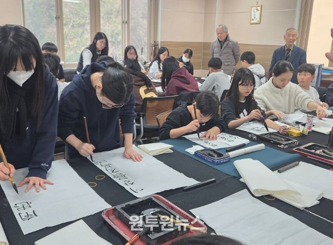 (원투원뉴스) 경북교육청은 12일 안동시에 있는 경상북도유교문화회관 교육관에서 도내 초․중․고등학생 70여 명이 참여한 가운데 ‘가족이름 한자 붓글씨 쓰기 대전’을 성황리에 개최했다고 밝혔다.