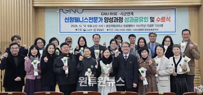 (원투원뉴스) 경상국립대학교 라이즈(RISE)사업단 시군연계 사업 ‘산청군 웰니스전문가 양성과정’은 1기 성과공유 및 수료식을 12월 12일 오후 칠암캠퍼스 100주년 기념관 1203호에서 열었다.