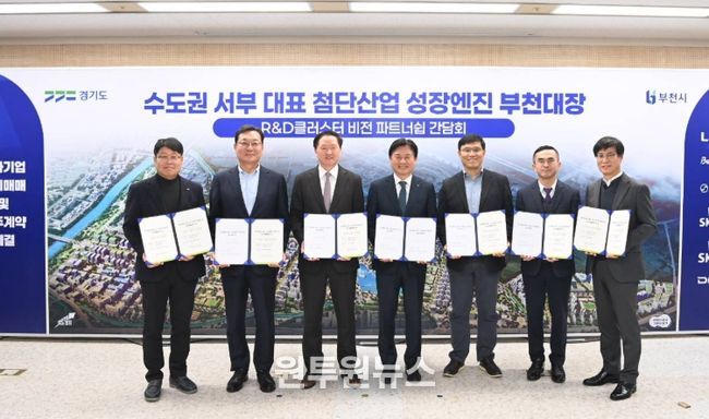 (원투원뉴스) 부천시는 15일 오정구청 대회의실에서 대한항공, SK이노베이션, SK하이닉스, DN솔루션즈 등 4개 기업과 ‘부천대장 R&D 클러스터 비전 파트너쉽 간담회’를 갖고, ‘부천대장 도시첨단산업단지 입주 계약’을 체결했다. 이날 4개 기업은 한국주택토지공사(LH)와 4천1백억 원 규모 토지매매계약도 함께 완료했다.