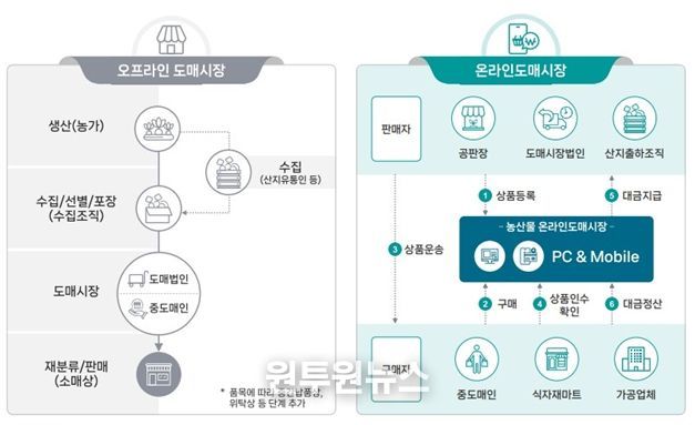 온라인 도매시장은 기존 오프라인 도매시장보다 수수료가 낮다.